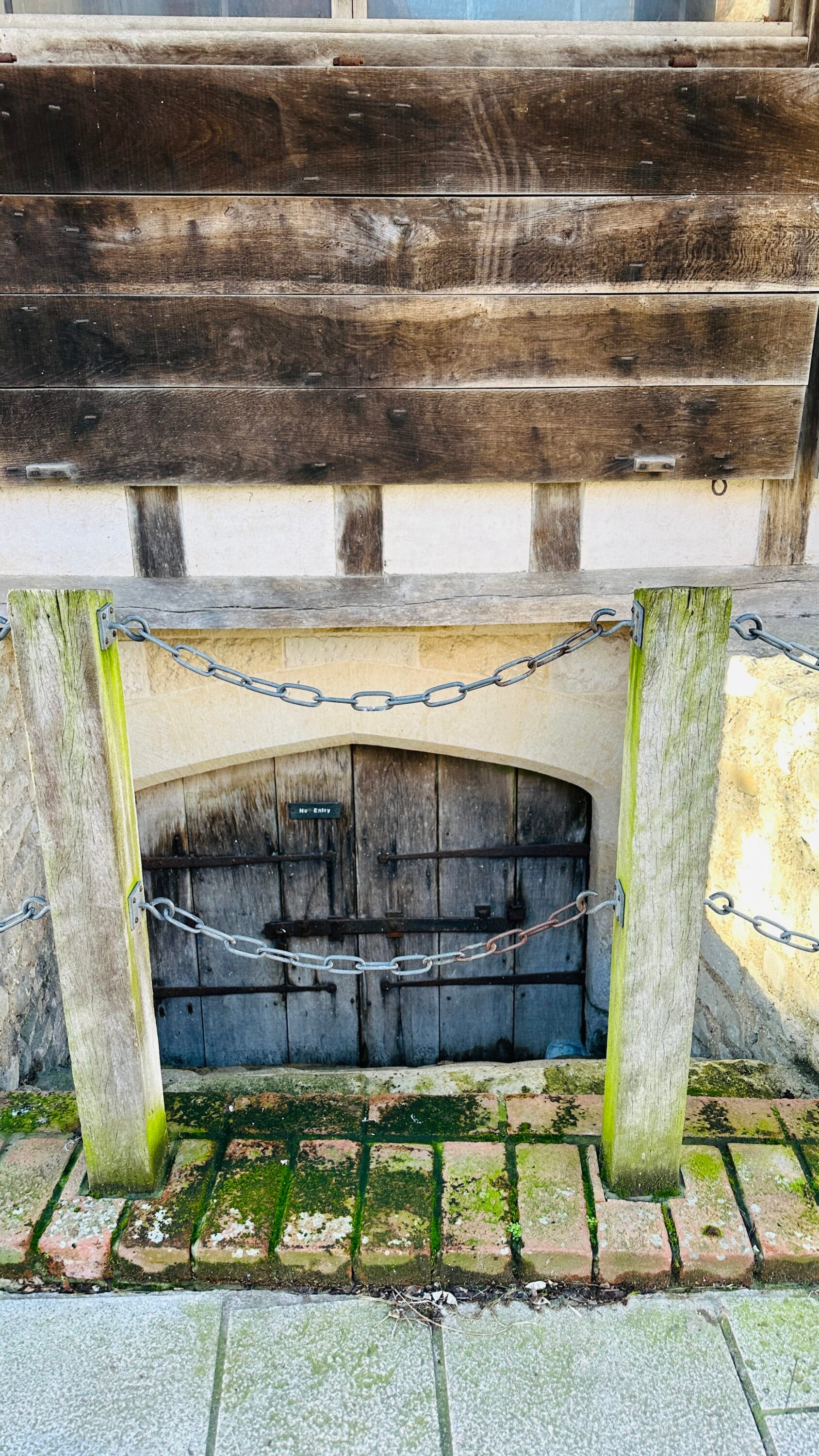 The house is a classic example of a “right-angle” hall house, designed to maximise the narrow street frontage common in medieval walled towns. Its survival is particularly noteworthy given the heavy bombing Southampton endured during the 20th century. While much of the surrounding area was destroyed, this structure remained, allowing historians and visitors to study its original layout. In our photos, you can see the intricate timber work and the traditional wattle-and-daub infill that characterise the exterior. The building was meticulously restored by English Heritage in the 1980s to its mid-14th-century appearance, removing later additions to reveal the medieval skeleton beneath.