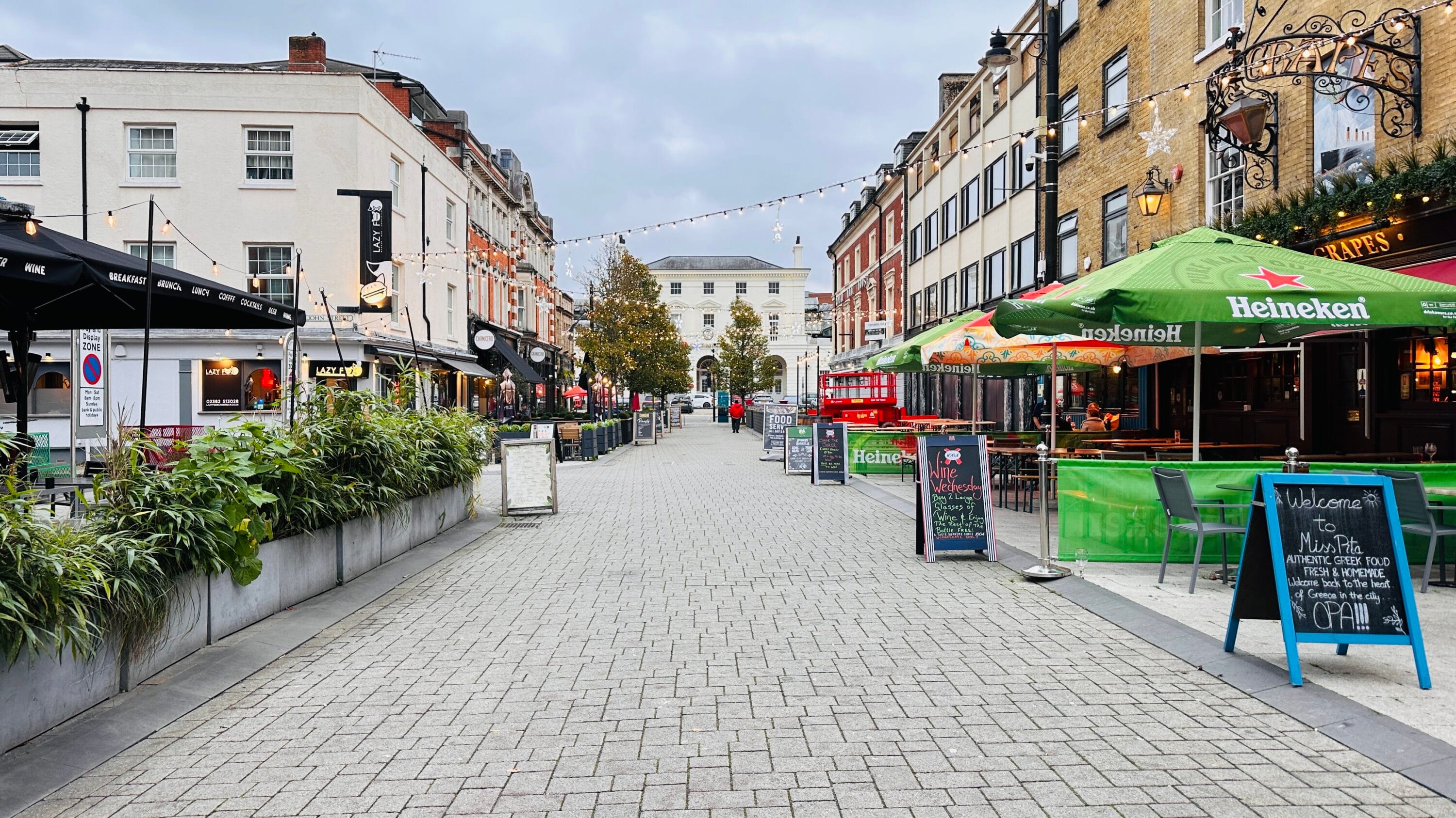 In recent years, Oxford Street has evolved into the premier destination for outdoor dining and socialising in Southampton. The street is often partially pedestrianised, allowing the various bars and restaurants to spill out onto the pavement with stylish seating and parasols. This creates a “vibrant atmosphere” that is reminiscent of a Mediterranean plaza. Our latest photos highlight the diverse range of establishments that call this street home, from high end steak houses and authentic Italian trattorias to trendy cocktail lounges and traditional English pubs. Key visual elements captured in our gallery include: